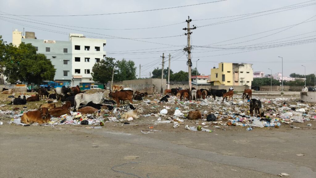 भीलवाड़ा में ‘बिना नाम की गौशाला’ में कचरा खाते गौवंश, नगर निगम का टिपर रोज़ कचरा उड़ेल कर चला जाता है