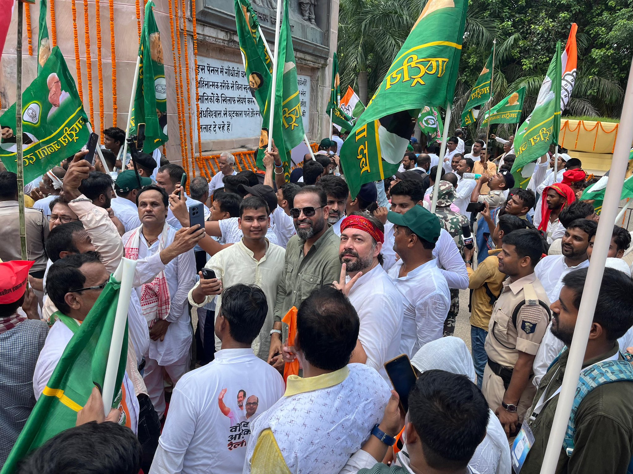 सुबह राहुल गांधी ने पटना के गांधी मैदान स्थित महात्मा गांधी की प्रतिमा पर पुष्पांजलि अर्पित कर मार्च की शुरुआत की। उनके साथ कांग्रेस अध्यक्ष मल्लिकार्जुन खरगे, राजद नेता तेजस्वी यादव, झारखंड के मुख्यमंत्री हेमंत सोरेन, भाकपा (माले) के महासचिव दीपंकर भट्टाचार्य, भाकपा महासचिव डी. राजा, माकपा नेता एम. ए. बेबी, शिवसेना (उद्धव गुट) के संजय राउत, राकांपा की कार्यकारी अध्यक्ष सुप्रिया सुले, तृणमूल कांग्रेस के सांसद यूसुफ पठान और अन्य कई नेता मौजूद रहे।