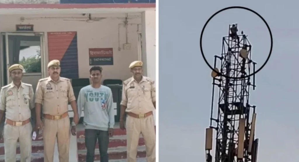 प्रेमिका से बात के बाद नीचे उतरा युवक, पुलिस ने लिया हिरासत में