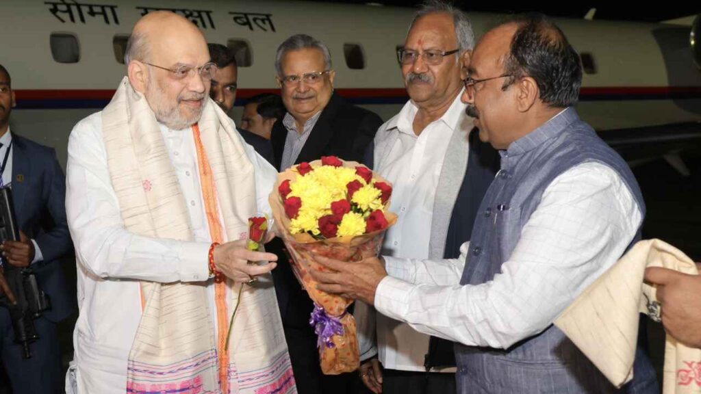 CG News: केंद्रीय गृहमंत्री अमित शाह दो दिवसीय छत्तीसगढ़ दौरे पर आए हैं. शुक्रवार (12 दिसंबर) की रात 9.17 बजे गृहमंत्री रायपुर स्थित स्वामी विवेकानंद एयरपोर्ट पहुंचे. हवाई अड्डे पर गृह मंत्री का स्वागत सीएम विष्णुदेव साय ने किया. रायपुर एयरपोर्ट से होम मिनिस्टर सीधे मेफेयर रिसोर्ट के लिए रवाना हुए.