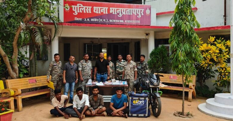 भानुप्रतापपुर : ई-र्ट कंपनी के डिलीवरी बॉय से पार्सल लूटकर फरार हुए चार आरोपियों को पुलिस ने गिरफ्तार कर लिया है। घटना भानुप्रतापपुर थाना क्षेत्र की है, जहां आरोपियों ने युवक से मारपीट कर ₹38,896 की सामग्री लूटी थी। पुलिस ने त्वरित कार्रवाई करते हुए चारों को गिरफ्तार कर न्यायिक रिमांड पर जेल भेज दिया है। घटना का विवरण 20 वर्षीय डिलीवरी बॉय मनोहर मातरम, निवासी सुखई, 20 मई को मोटरसाइकिल से भानबेड़ा और भोड़िया क्षेत्र में पार्सल डिलीवरी करने गया था। इसी दौरान ग्राम मर्देल निवासी हरेश कुमार उयके ने कॉल कर पार्सल लेने की बात कही। मौके पर हरेश तीन अन्य साथियों के साथ पहुंचा और पार्सल छीनने की कोशिश की। विरोध करने पर प्रार्थी से मारपीट कर जान से मारने की धमकी दी गई और ई-कार्ट का पार्सल बैग लूट लिया गया, जिसमें कुल ₹38,896 की सामग्री थी। अपराध पंजीबद्ध और जांच प्रार्थी की शिकायत पर पुलिस ने धारा 396, 115(1), 351(2), 309(4) बीएनएस के तहत मामला दर्ज किया। वरिष्ठ अधिकारियों के निर्देश पर थाना प्रभारी रामेश्वर देशमुख के नेतृत्व में एक विशेष टीम का गठन किया गया। तकनीकी सहायता से आरोपियों की लोकेशन ट्रैक कर घेराबंदी कर चारों को गिरफ्तार कर लिया गया। गिरफ्तार आरोपी: महेंद्र कुमार कावड़े (23 वर्ष)चारों आरोपी ग्राम मर्देल के निवासी हैं। पूछताछ में सभी ने अपराध स्वीकार कर लिया है। पुलिस ने उन्हें न्यायिक हिरासत में जेल भेज दिया है। इस त्वरित कार्रवाई के लिए पुलिस विभाग की व्यापक सराहना की जा रही है। हरेश कुमार उयके (28 वर्ष) अजय कुमार उयके (25 वर्ष) लिलेश कुमार उयके