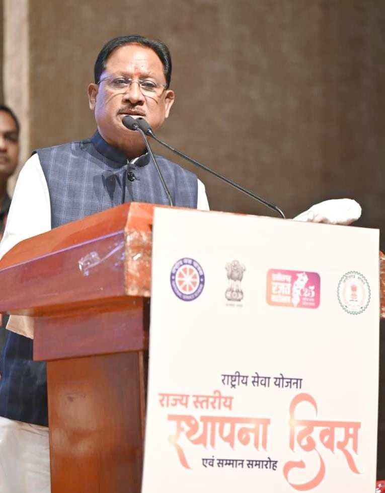 रायपुर। राष्ट्रीय सेवा योजना (एनएसएस) के स्थापना दिवस के अवसर पर आयोजित राज्य स्तरीय कार्यक्रम में मुख्यमंत्री विष्णु देव साय
