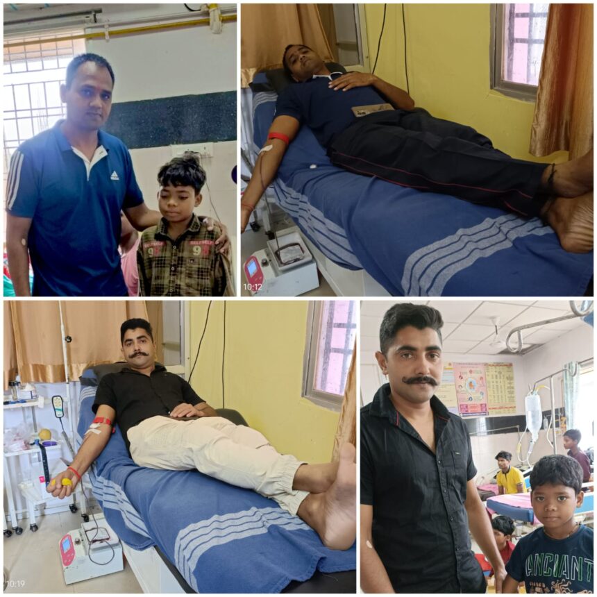 नारायणपुर। दो बच्चों की जान बचाने 10किमी दौड़कर रक्तदान करने पहुंचे जवान जिला अस्पताल नारायणपुर में विगत चार दिनों से मलेरिया व खून की कमी होने से भर्ती रोहित दुग्गा व रोशन दुग्गा पिता रामलाल दुगा निवासी कातुलबेड़ा (एड़का) नारायणपुर से हैं, जिन्हें बहुत ज्यादा खून की कमी होने से शरीर में सूजन आ गया था। इस बीच डॉक्टर ने बच्चों को खून चढ़ाने के लिए शीघ्र खून की व्यवस्था करने की बात कही रामलाल दुग्गा ने बच्चों के लिए खून की व्यवस्था को लेकर पत्रकार संतोष नाग से चर्चा किया, इस पर पत्रकार संतोष नाग ने खून की आवश्यकता को लेकर सोशल मीडिया पर पोस्ट किया।