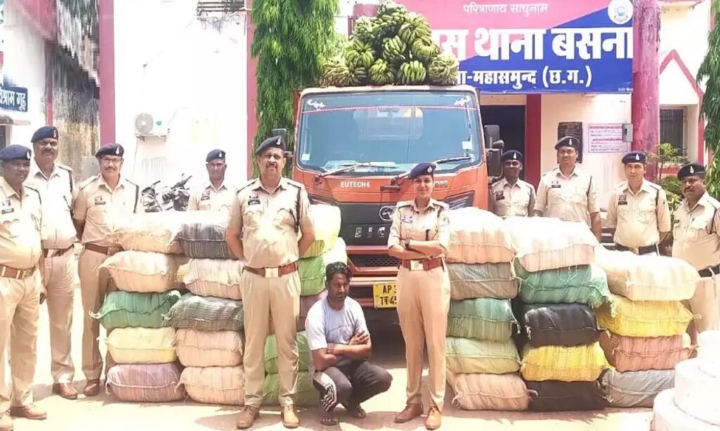 महासमुंद : छत्तीसगढ़ के महासमुंद जिले में पुलिस ने नशे के खिलाफ बड़ी सफलता हासिल करते हुए 4.56 करोड़ रुपये मूल्य का गांजा जब्त किया है। बसना पुलिस ने नाकेबंदी के दौरान एक ट्रक को रोका, जिसमें केले की आड़ में गांजा छिपाकर ले जाया जा रहा था।