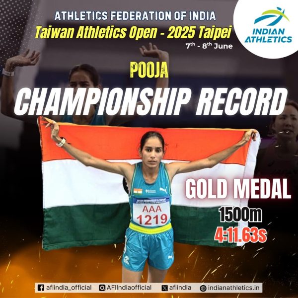 2 स्वर्ण पदक – ताइवान ओपन एथलेटिक्स मीट (1500 मीटर एवं 800 मीटर)