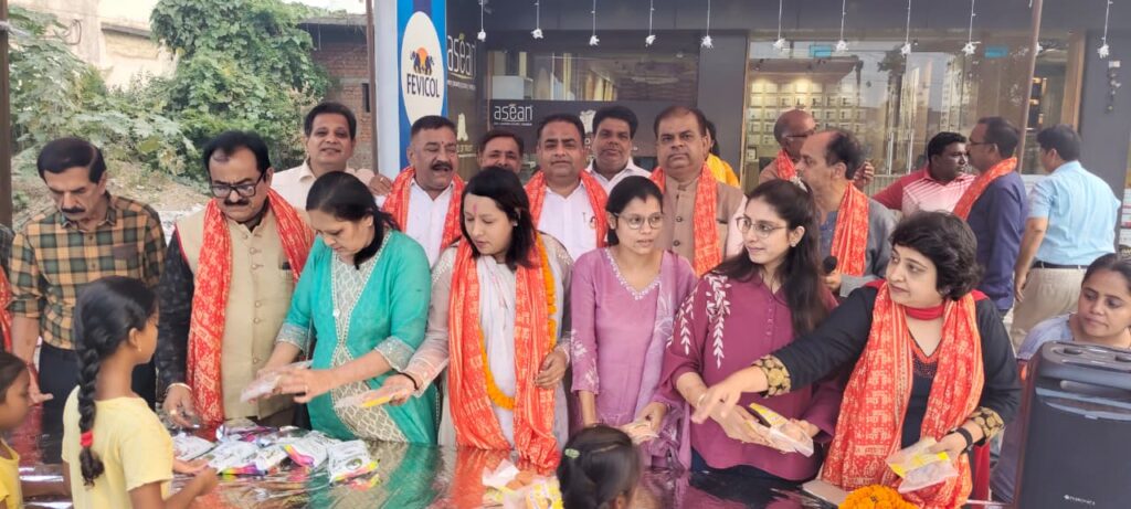 सिंधी काउंसिल ऑफ इंडिया छत्तीसगढ़ इकाई द्वारा एक दीया श्रीराम के नाम पर देवेंद्र नगर इलाके में निशुल्क दीया एवम रंगोली वितरण किया गया सिंधी काउंसिल के प्रदेश अध्यक्ष ललित जैसिंघ ने बताया लगातार चार दिनों से दीया एवम रंगोली वितरित की जा रही है हमारा प्रयास है दिवाली के पहले सभी घर पर दीए और रंगोली का पैकेट पहुंचे और एक आग्रह है सभी एक दीया श्रीराम के नाम से जलाए आयोजन के मुख्य अतिथि चैंबर अध्यक्ष सतीश थोरानी ने कहा सिंधी काउंसिल की पहल को नमन बहुत अच्छा नेक कार्य संस्था द्वारा किया जा रहा है निशुल्क दीया एवम रंगोली हर घर तक पहुंचे इसी लक्ष के साथ काम किया जा रहा है वार्ड पार्षद कृतिका जैन ने कहा बड़ी खुशी का पल मेरे लिए है मेरे वार्ड में एक दीया श्रीराम के नाम पर निःशुल्क वितरण किया जा है बड़ी संख्या वार्ड वासी को रंगोली पैकेट दिए गए पंडरी कपड़ा मार्केट के अध्यक्ष सरल मोदी ने दिवाली पर बधाई दी सिंधी काउंसिल महिला विंग अध्यक्ष काजल सचदेव ने कहा बच्चे पुरुष महिला सभी को दीए वितरण किया गया सबने एक स्वर में जय श्रीराम के नारे लगाए इस अवसर पर चैंबर अध्यक्ष सतीश थोरानी सिंधी काउंसिल अध्यक्ष ललित जैसिंघ पार्षद कृतिका जैन पंडरी कपड़ मार्केट अध्यक्ष सरल मोदी सिंधी काउंसिल उपाध्यक्ष रितेश वाधवा बीजेपी मंडल अध्यक्ष जितेंद्र गंदेचा भगवान यादव सुनील पंड्या राजकुमार सोनी जतिन नचरानी डॉक्टर एन डी गजवानी महिला विंग अध्यक्ष काजल सचदेव धनेश मटलानी राजेश रेलवानी सुरेश सचदेव कमलेश शर्मा ठाकरे जी उपस्थित थे