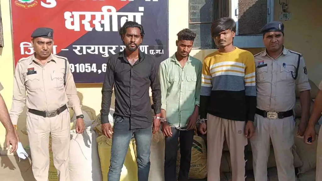 रायपुर : ग्रामीण क्षेत्र में एफसीआई गोदाम से धान चोरी के मामले में पुलिस ने बड़ी कार्रवाई करते हुए तीन आरोपियों को गिरफ्तार किया है। Raipur Paddy Theft Case में यह कार्रवाई थाना धरसींवा पुलिस ने 9 मार्च 2026 को की। आरोपियों पर एफसीआई गोदाम में सेंध लगाकर धान की बोरियां चोरी करने का आरोप है।