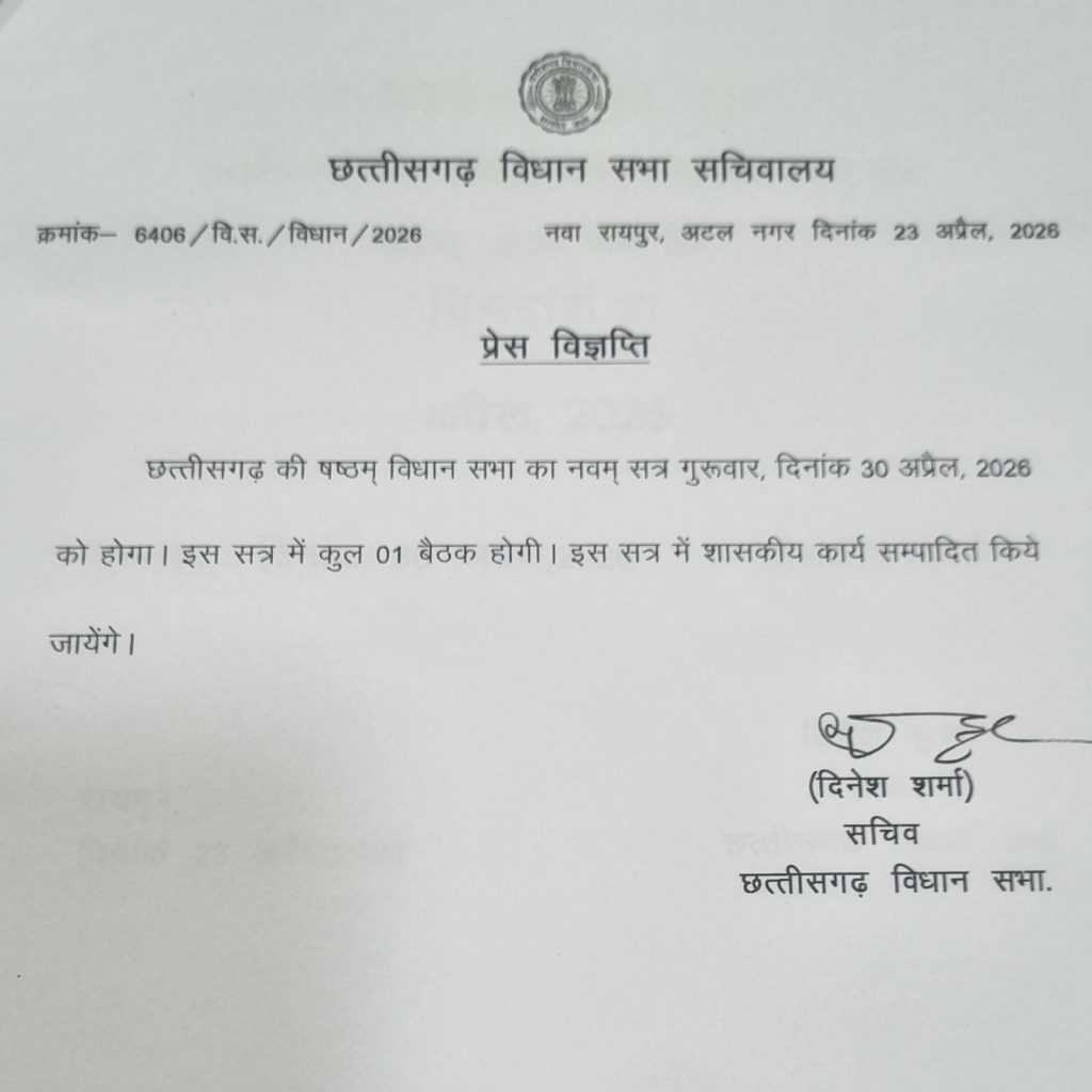 इस मुद्दे को लेकर छत्तीसगढ़ विधानसभा में 30 अप्रैल को विशेष सत्र बुलाया जा रहा है। सरकार इस सत्र के जरिए अपना रुख स्पष्ट करने और राजनीतिक संदेश देने की तैयारी में है।