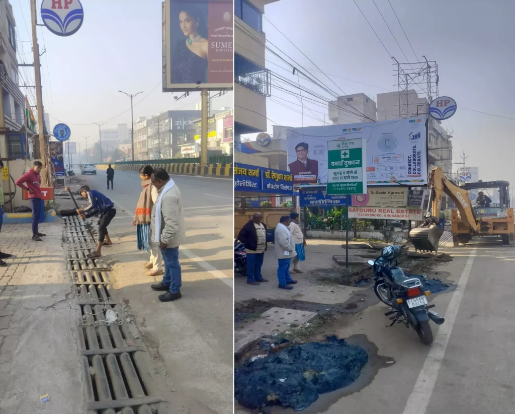 स्थल पर शिकायत सही पाए जाने के बाद जोन कमिश्नर प्रीति सिंह ने तत्काल कार्रवाई के निर्देश दिए। मौके पर जेसीबी मशीन बुलवाई गई और करीब 15 दुकानों के सामने नालियों पर बने पाटों को तोड़ा गया। इसके बाद नालियों से कचरा और गंदगी बाहर निकालकर उसका विधिवत परिवहन करवाया गया, जिससे जल निकासी व्यवस्था को सुचारू बनाया जा सके। यह Raipur Cleanliness Action जोन स्तर पर त्वरित समाधान का उदाहरण माना जा रहा है।