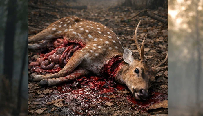 अंबिकापुर : के पनिकापारा जंगल में हाल ही में हुई चीतल की मौत ने वन्यजीव संरक्षण पर गंभीर सवाल खड़े कर दिए हैं। भोर की हल्की रोशनी के बीच जब ग्रामीण महुआ और सूखी लकड़ी बीनने पहुंचे, तो उन्होंने एक चीतल का क्षत-विक्षत शव देखा। सूखी पत्तियों पर पड़ा शव बुरी तरह से फटा हुआ था, पेट चीरा हुआ और आंतें बाहर निकली हुई थीं। आसपास खून फैला हुआ था, जिससे मिट्टी तक काली पड़ गई थी।